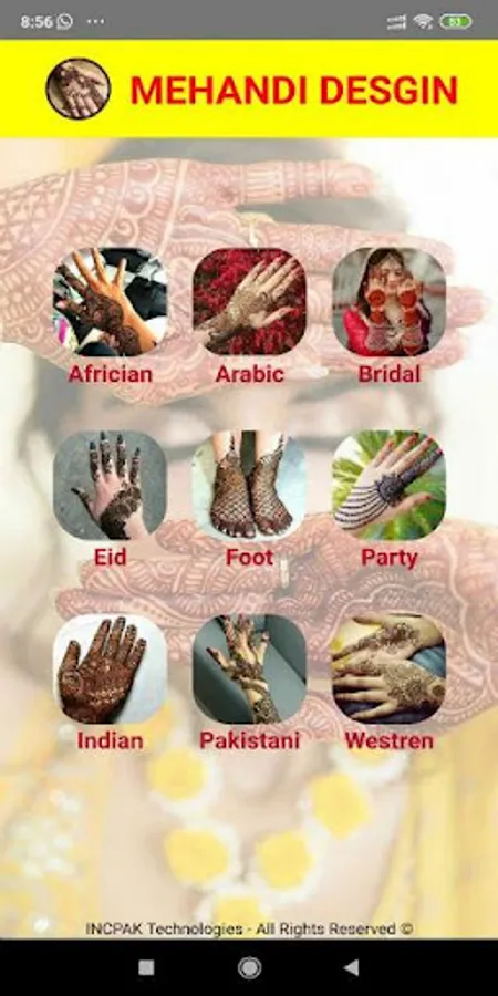 This Mehndi Designs application brings the latest and updated Mehndi designs for you. Mehndi Designs Application provides you a simple and very attractive user interface to check the latest Mehndi designs. Mehndi designs app has a large number of different styles. For the easiness of the user, it provides different User interfaces also. This application has a large number of different mehndi designs for girls who are searching for mehndi designs for them. Mehndi designs offer you to check different types of mehndi designs like Pakistani, Indian, Arabic, African, Party, Western, Bridal, Foot and ‘Eid Designs.