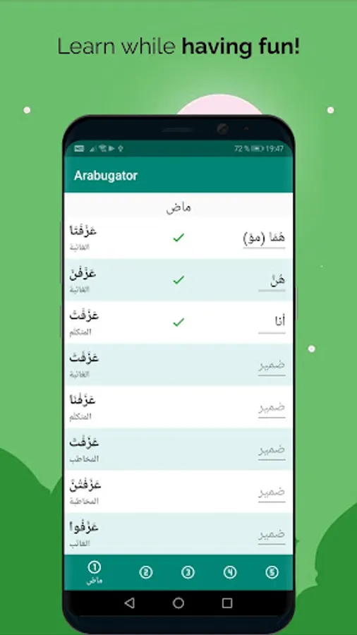 Arabugator is an application that allows you to consolidate your knowledge in Arabic conjugation.