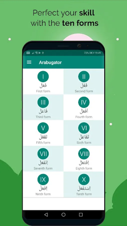 We propose you to review the 10 most common verb forms in Arabic, these forms applied to a verb allow you to vary the meaning and turns of phrases.