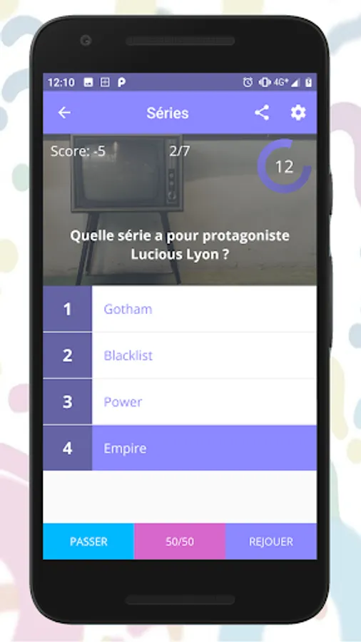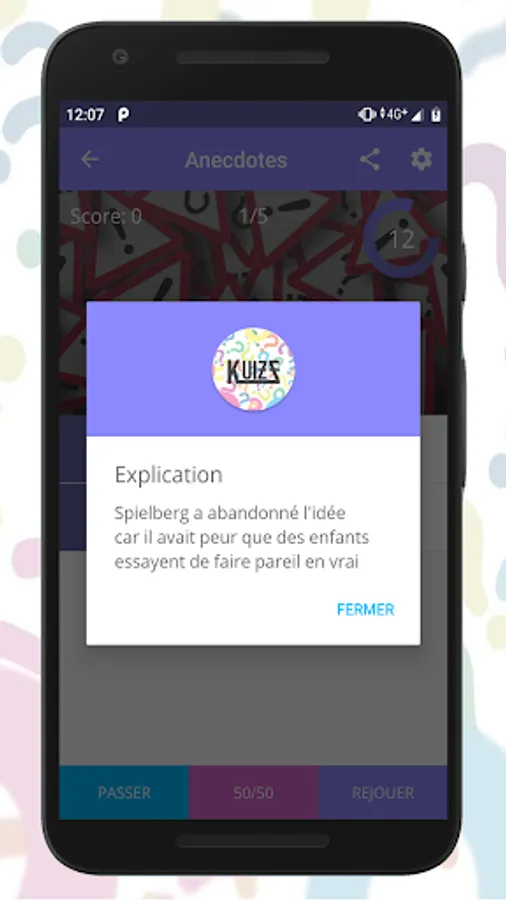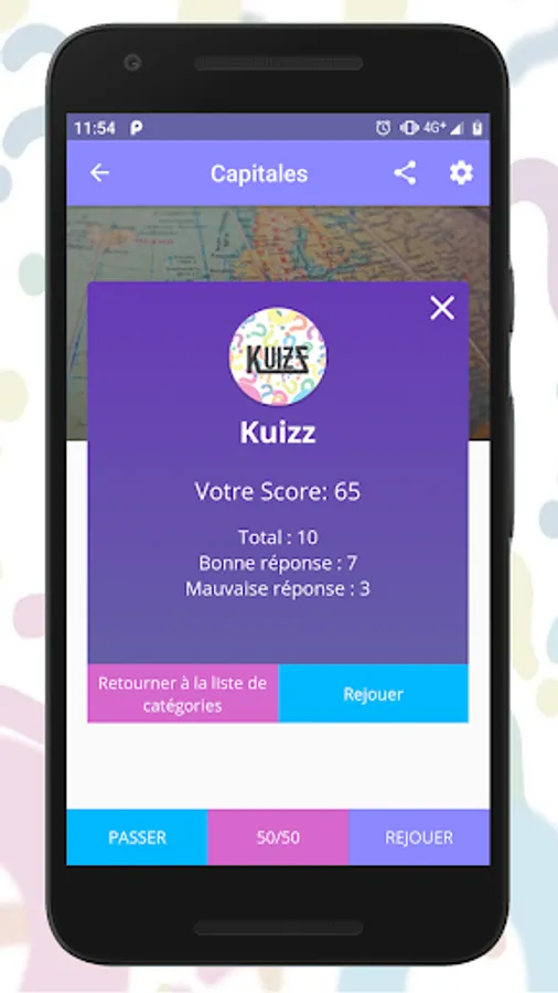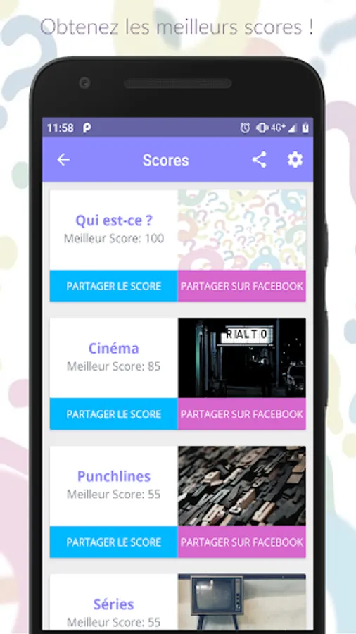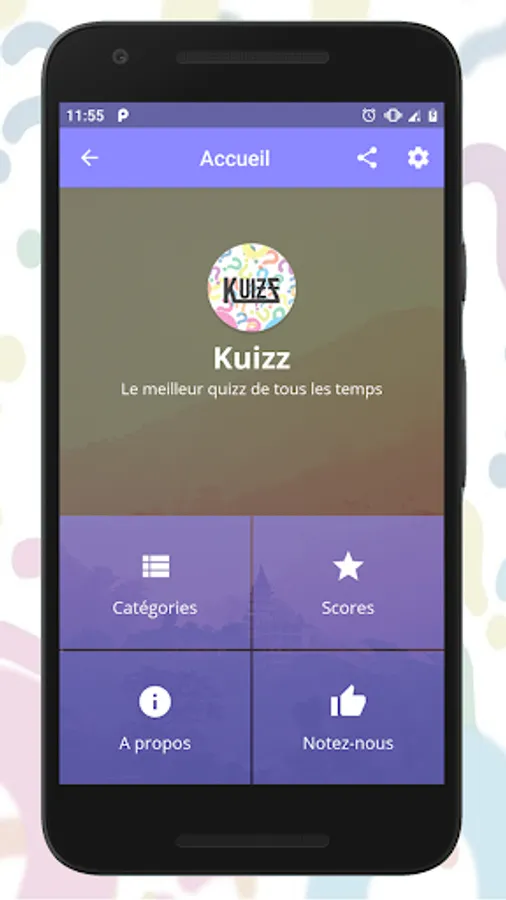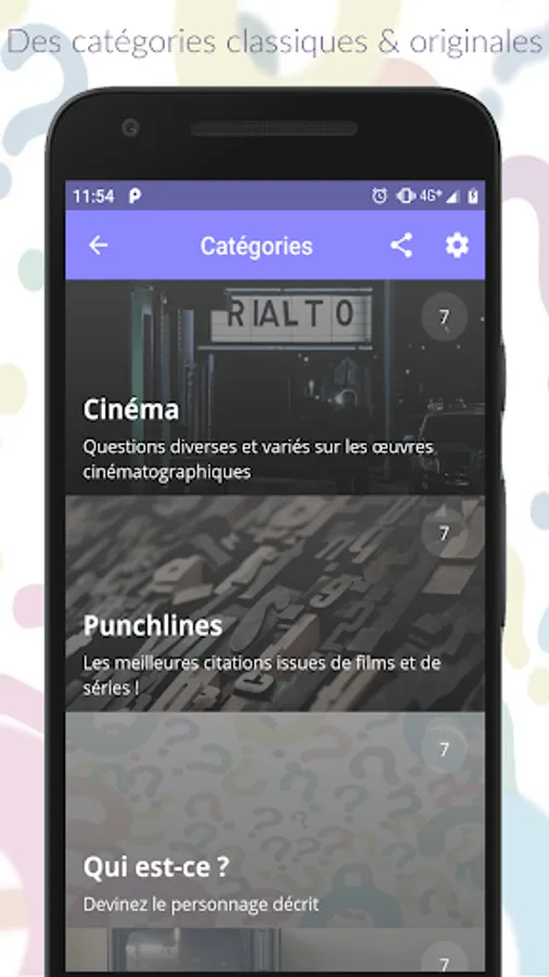 Kuizz offers different categories of questions: cinema, punchlines, characters, anecdotes and many more!