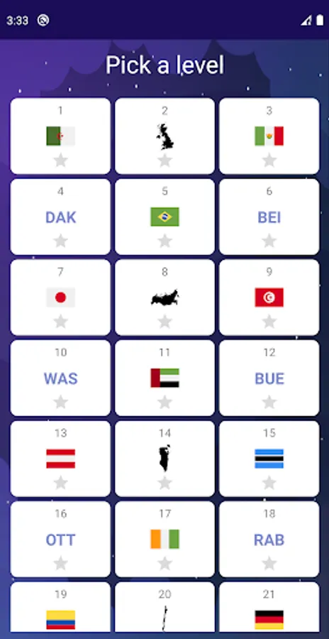 Where we at is a geography game, you have to find the country corresponding to each level according to the capital, the flag or the shape of the given country.