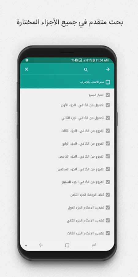 This application includes the most important Alhdithip books Shiites, completely identical to the order of printed books arranged, and full of the most important characteristics: