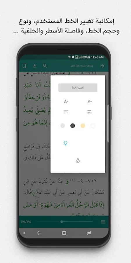 5 possibility of changing the font size, comma lines, and Khalifa screen and lighting.
