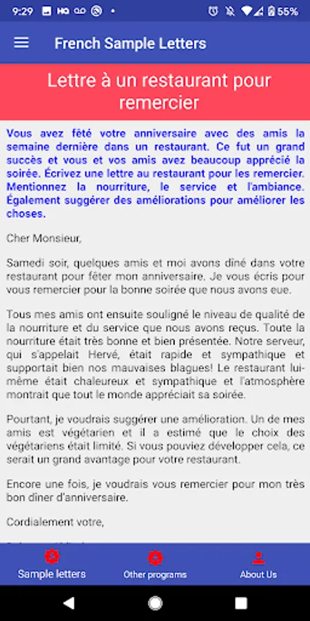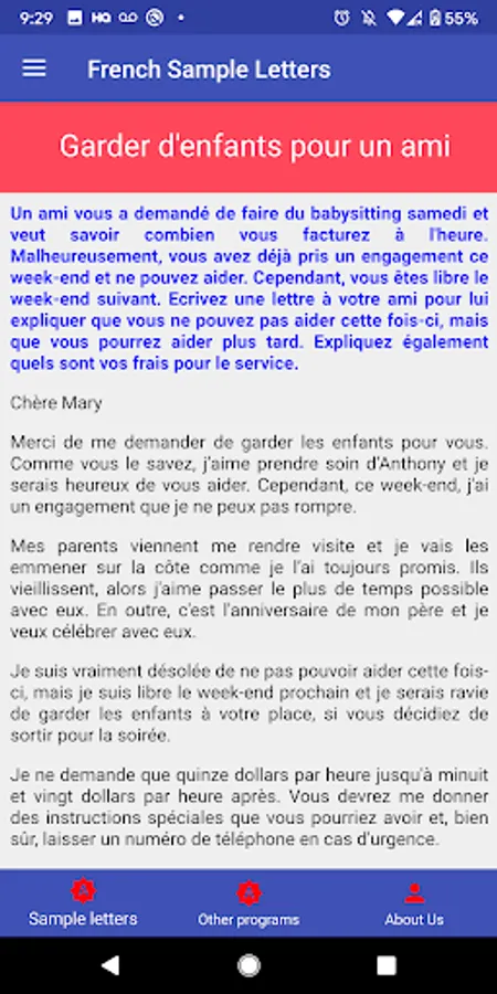 French Sample Letters Screenshots