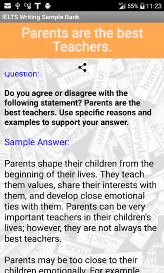 This app tried consists of many writing samples that can get at least band 7 score in IELTS.