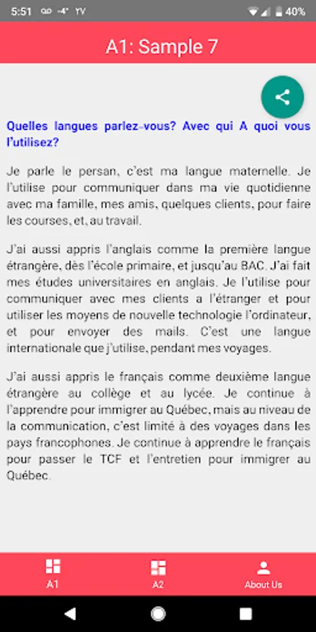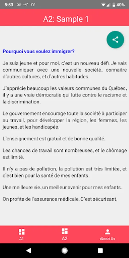 This app helps you pass your TCF or TEF exam. The goal is to get an idea of how to answer oral questions. This app also helps you to better interview if you plan to immigrate to Quebec.