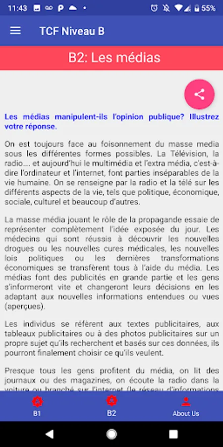 This app covers the levels B1 and B2. We have the same app in other levels, i.e. A and C.
