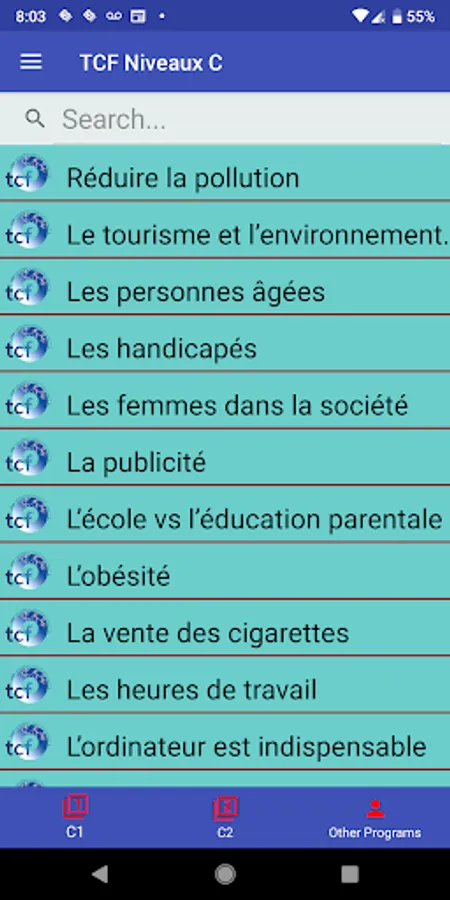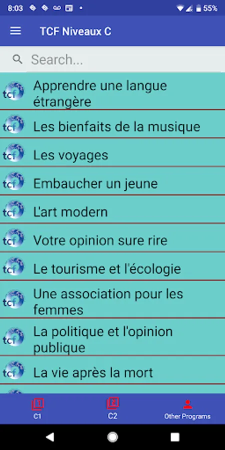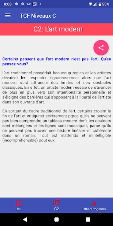 This app covers the levels C1 and C2. We have the same app in other levels, i.e. A and B.