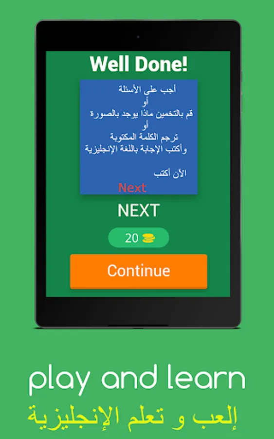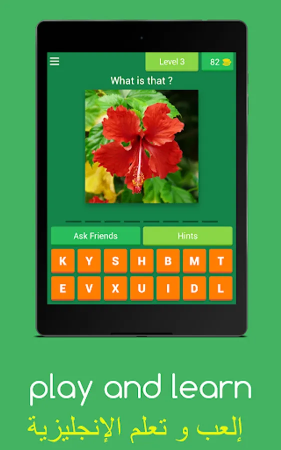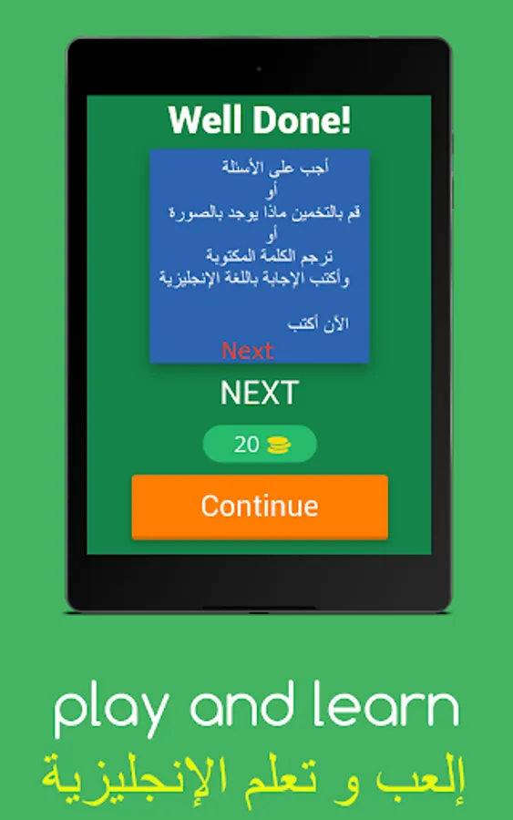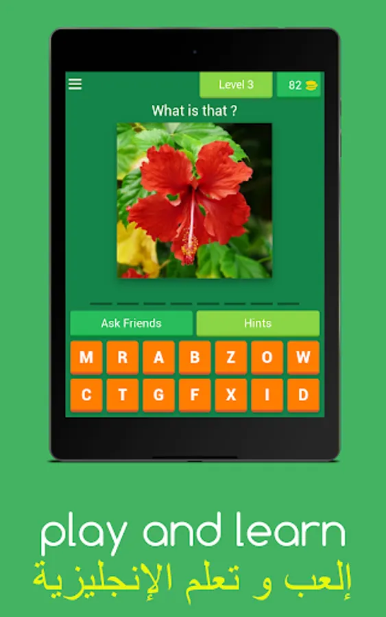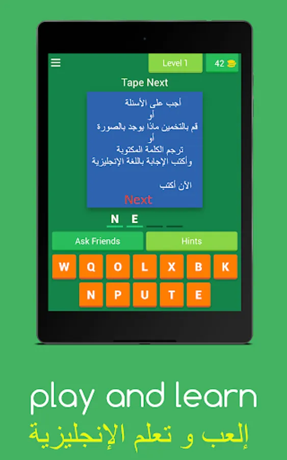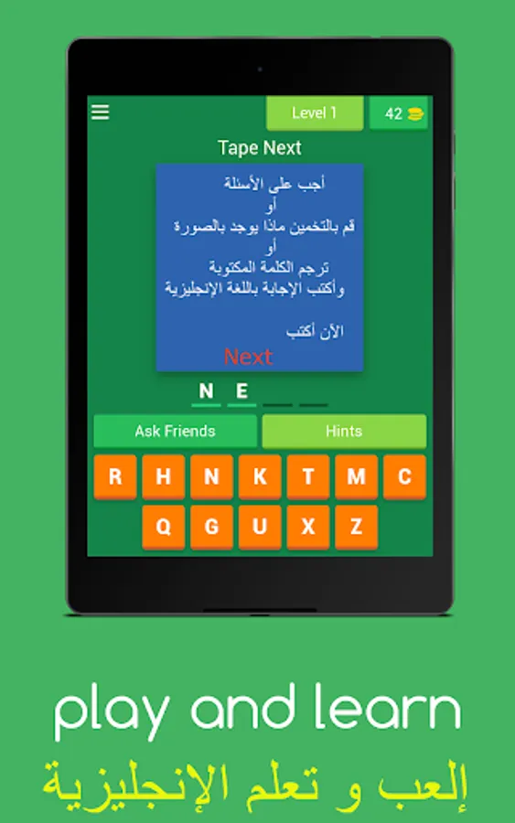 Play and learn English a new application that contains a set of tests that will help you learn English in an entertaining and enjoyable way, the application depends on the approach of practice and practice, challenge yourself and train every day and exceed all levels.