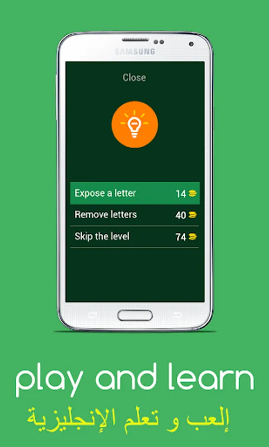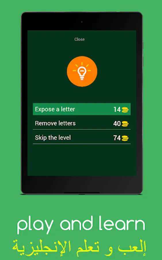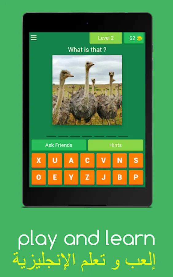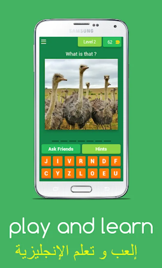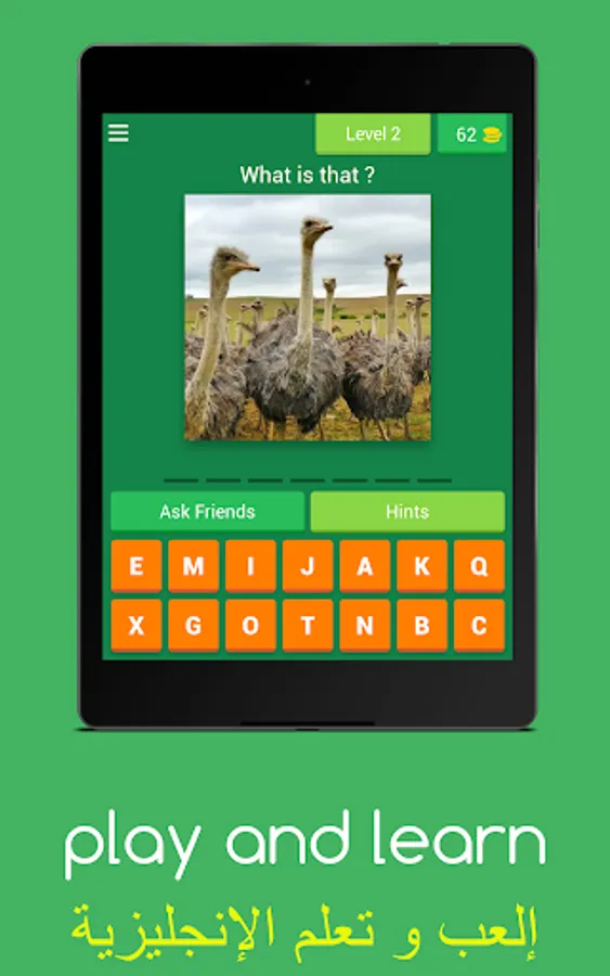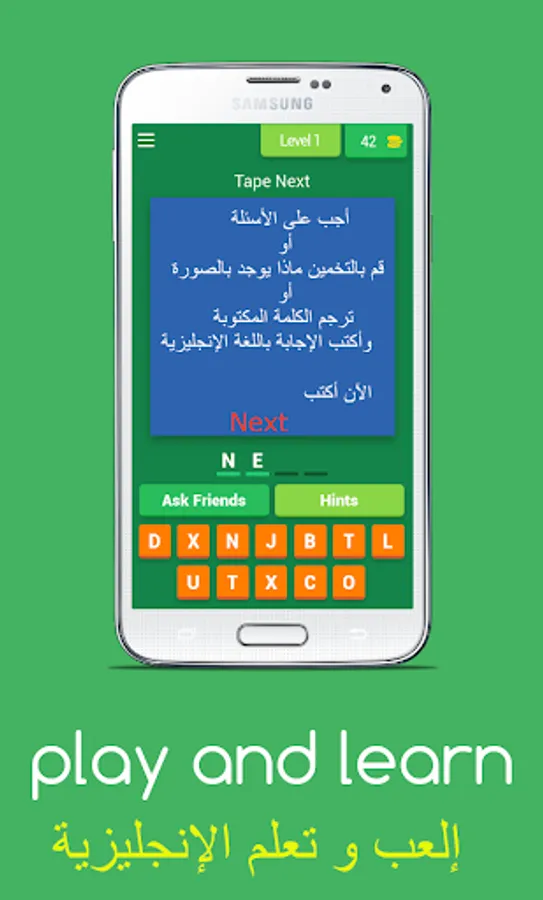 Play and learn English a new application that contains a set of tests that will help you learn English in an entertaining and enjoyable way, the application depends on the approach of practice and practice, challenge yourself and train every day and exceed all levels.