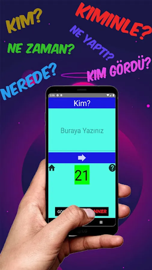 Different players answer each question on the screen. Players cannot see the answers. The game continues in this way, by answering the questions of "who", "with whom", "when", "where", "what he did", "who saw", "what he said" and changing the cards.