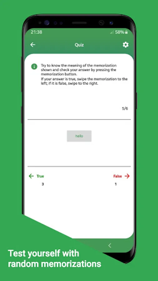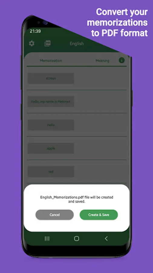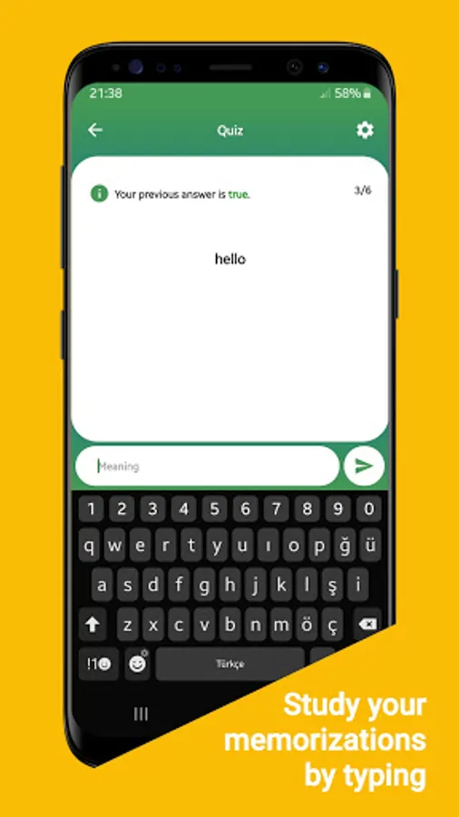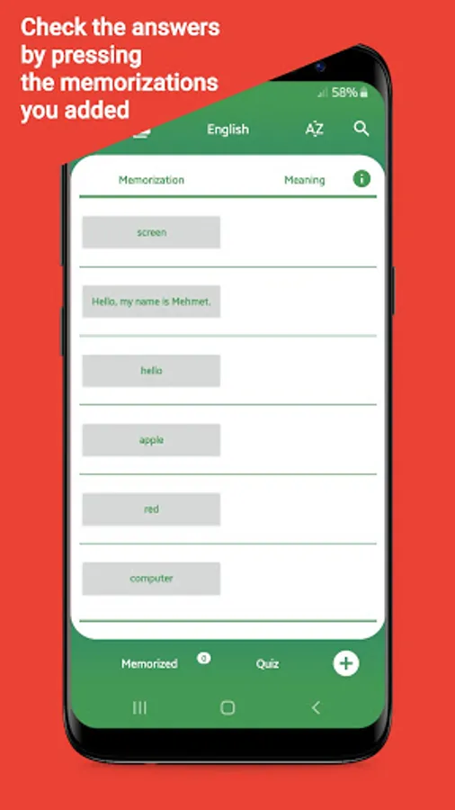 • Check the meanings by pressing the memorizations you added; always show the meanings from the options if you wish.
