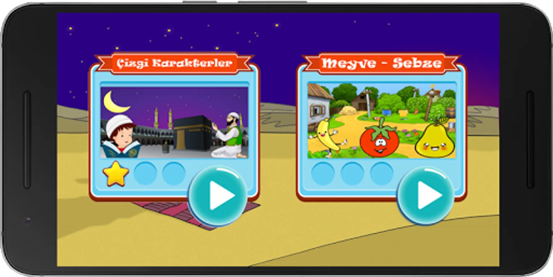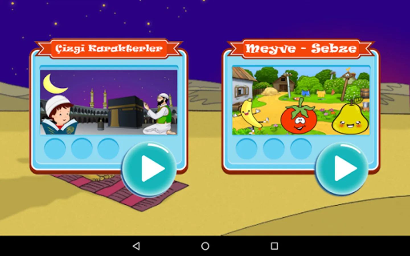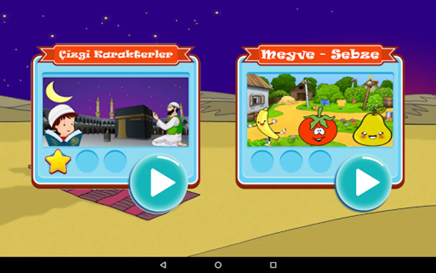 Islamic Memory Game is prepared especially for children and consists of Special Religious Characters and Fruit-Vegetable section.