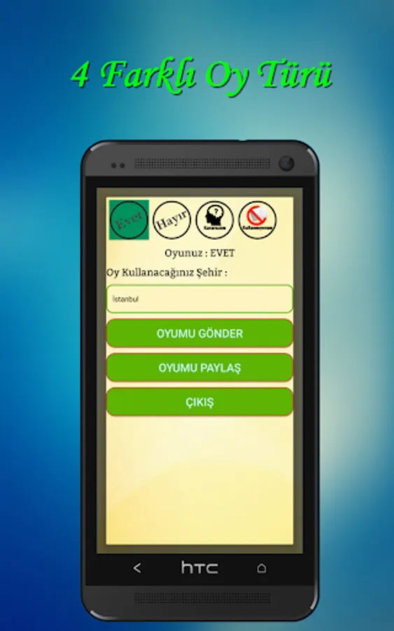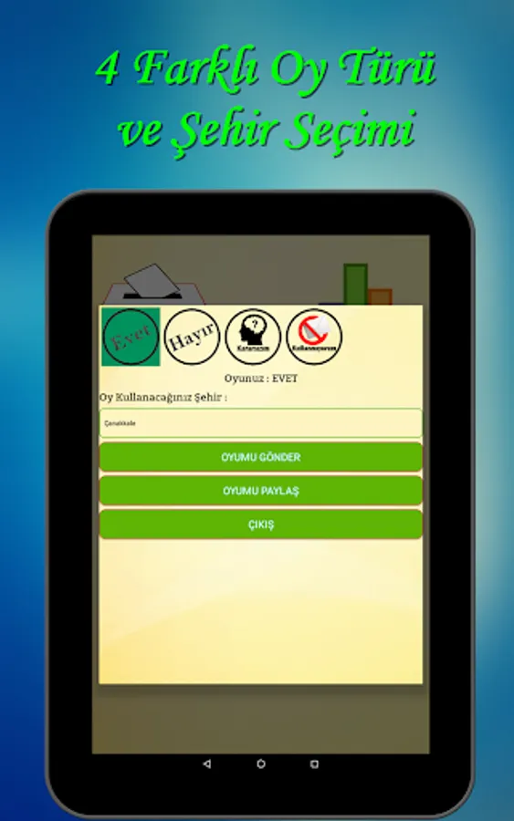 You have 1 vote per device in the application. Even if you delete the application and install it again, you will only change your vote.