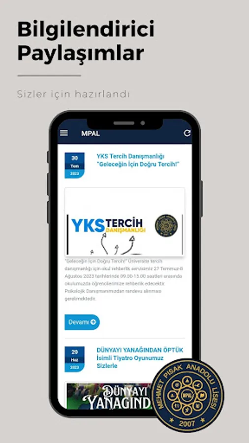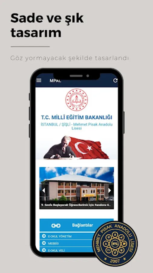 Welcome to the official application of Mehmet Pisak Anatolian High School! This application, designed to get to know our school better, access up-to-date information and make school life more efficient, is an indispensable resource for students, parents and teachers.