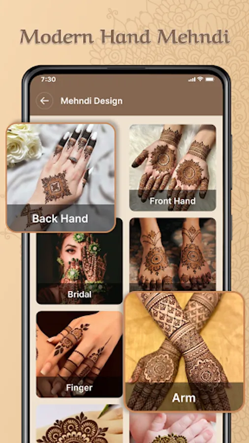 This Mehndi Design 2023 app includes the following mehendi designs categories: