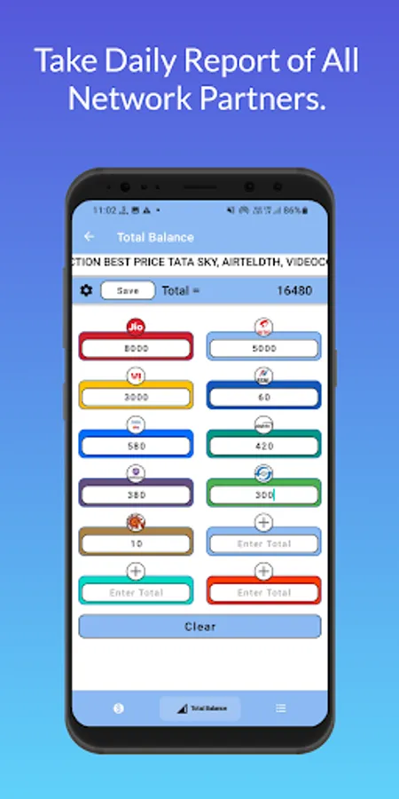 Take Daily Report of Your All Mobile Network Partner And Dish Tv Partner And Money Transfer Like ,