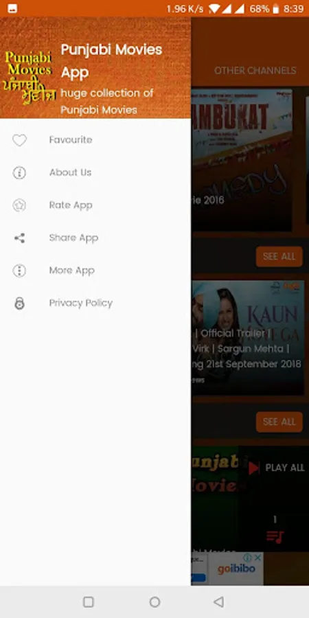 In this app you can Watch full videos of your favorite Punjabi Movies across Comedy, Drama, Love & Romantic, Thriller, Family Drama, Action Movies. You can enjoy Latest New Punjabi HD Movie Trailers in HD quality. You can watch Special Movie trailers of your favourite Pollywood/Punjabi Actor and actress like: Diljeet Dosanjh, Gippy Grewal, Babbu Mann, Gurdas Mann, Harbhajan Mann, Neeru Bajwa, Mahi Gill, Mandy Takhar, Kaur B, Jazzy B, Binnu Dhillon, Amrinder Gill, Gurpreet Guggi, Jaswinder Bhalla, Hardy Sandhu, Garry Sandhu, Jassi Gill, Dolly Bindra, Surveen Chawla.