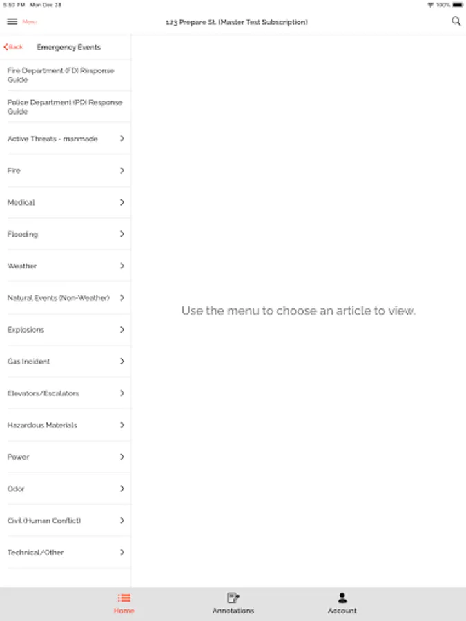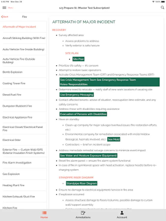 Emergency preparedness and response articles provide step by step procedures for everything from fire, gas leaks, hazardous materials incidents, terrorism (bombings, biological attacks, aerial assaults, mass shootings, hostage situations), and technical rescues to natural disasters (weather and non-weather related).