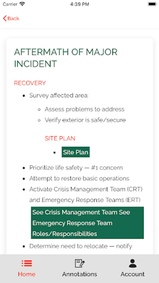 - Use the app offline! No need for a constant Internet connection once content is fully loaded (Internet connection required to login and sync/resync content and emergency messaging functions)
