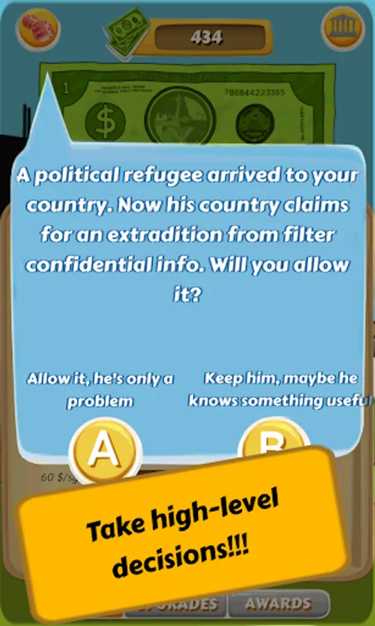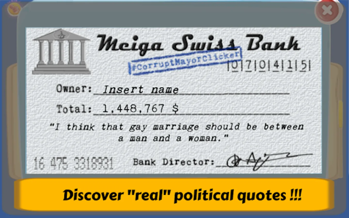 Play this funny clicker. You can make a lot of money as a "great" politician.