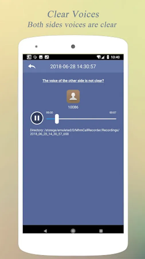 3. The recorded voice sounds clear, you can use the app built-in playback and easily export your recorded calls to the SD card, and send by email, WhatsApp or other means;