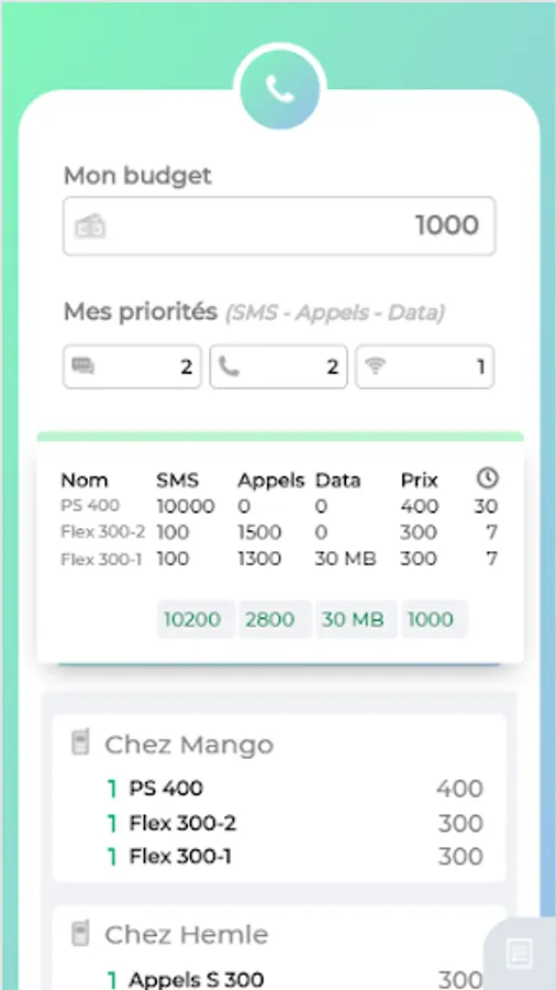 Best Plan is a simple application that determines the best plan or the best combination of mobile plans suitable for you. For that, the app just needs your budget and your preferences (SMS, Calls, Internet). It will then generate you the best combination of packs to take!