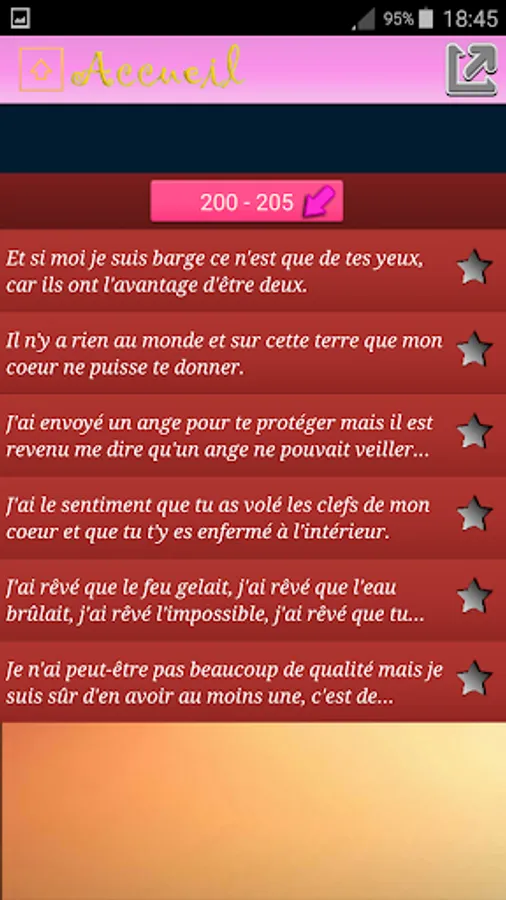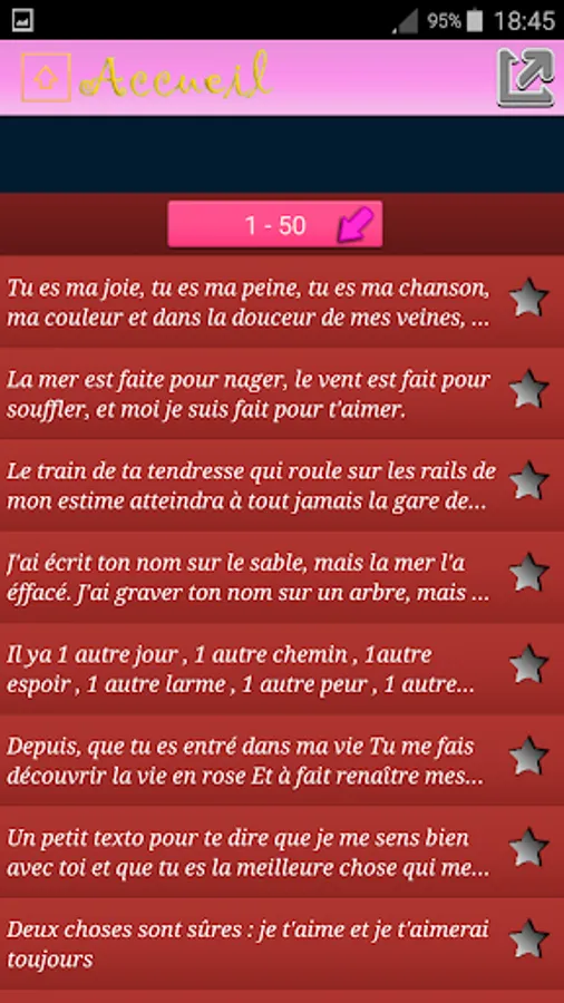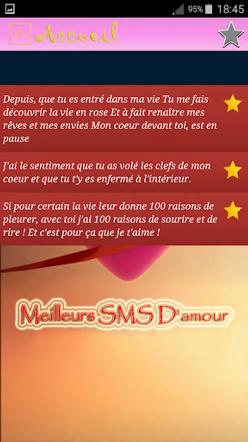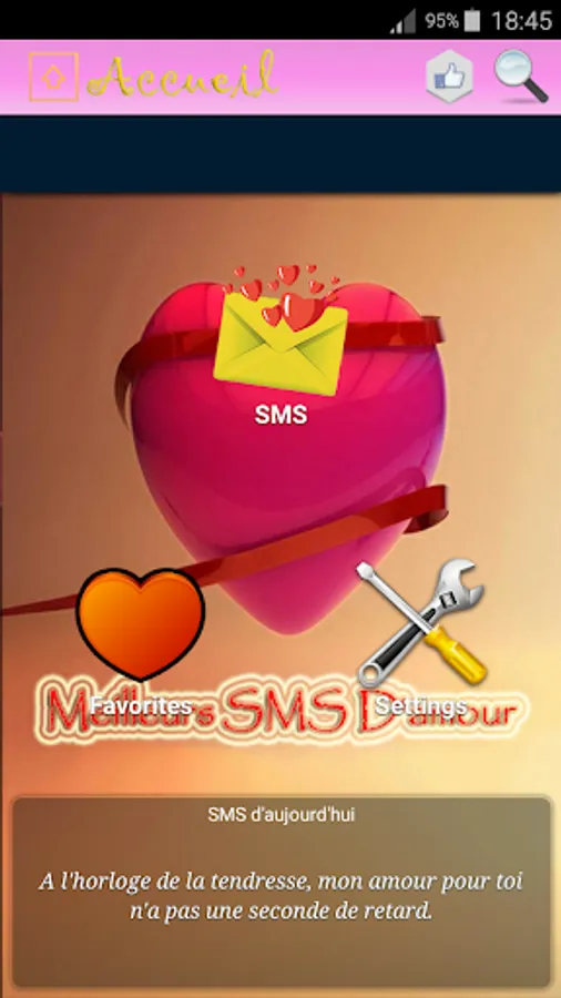 Thanks to this application you will not have to write SMS for your lover (is) just open the app and choose your SMS to express your feelings.