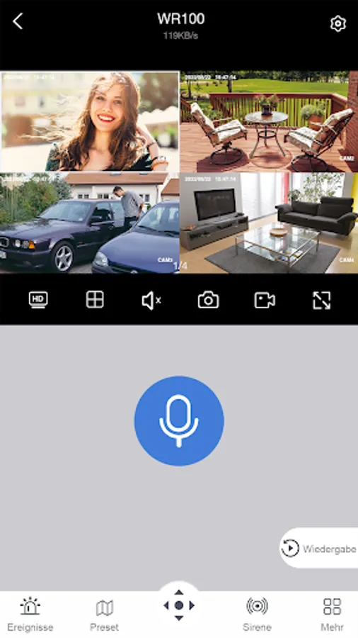 The app „MeinKameraSystem“ allows you to access your camera system or standalone camera from anywhere in the world.