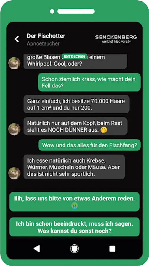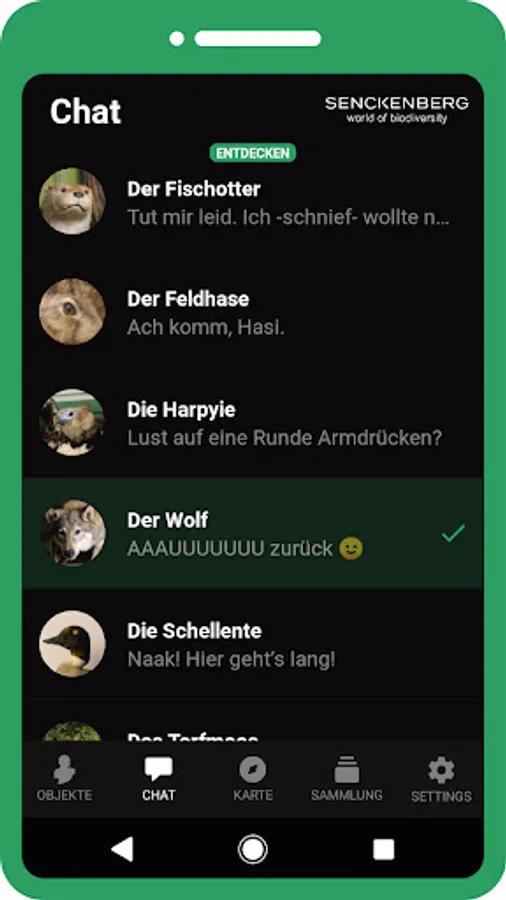 Die Museums-App "Mein Objekt - Senckenberg" ist Dein Begleiter bei der spielerischen Erkundung des Senckenberg Museum für Naturkunde Görlitz. Du kannst Objekte nach Deinen Interessen auswählen, mit ihnen chatten und sie im Museum besuchen. Manche Objekte sind witzig, andere launisch und wieder andere brauchen sogar Deine Hilfe. Wie sich die Gespräche entwickeln, hängt von Deinen Entscheidungen ab.