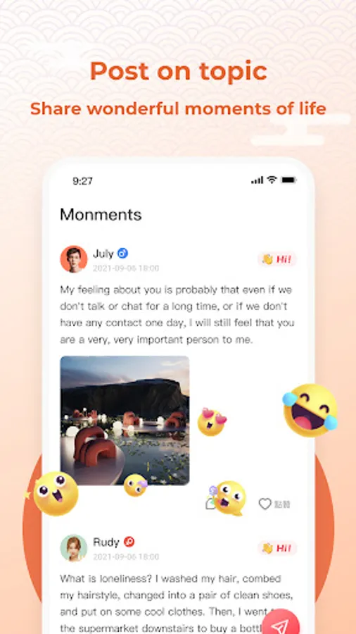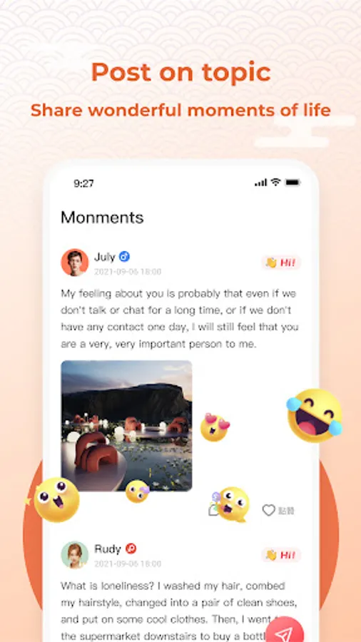 What do you want to say? Send text and photos, write content at will and express yourself easily.