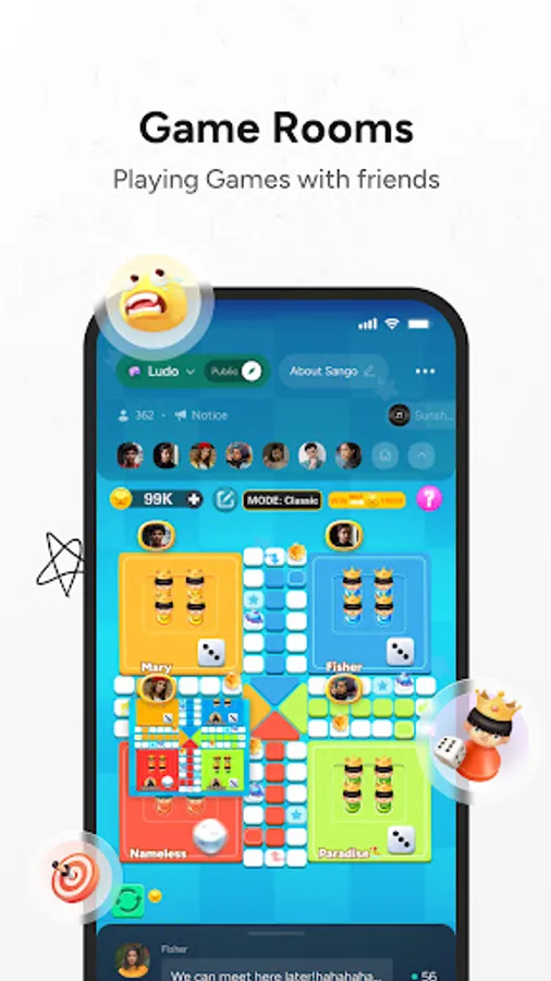 Sango is the best place to go live and voice chat! Join now to meet awesome friends worldwide, showcase talents, and support artists! Share your life with others all over the world. You will talk with others by sharing your stories or your ideas. Join an online party in Sango!