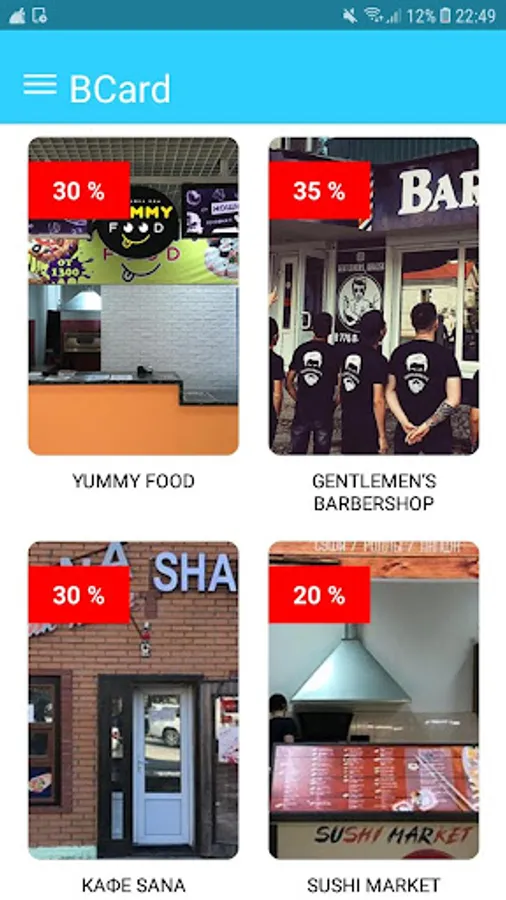 With the Bcard app, you can find great deals in stores, entertainment centers, cafes and restaurants in your city.