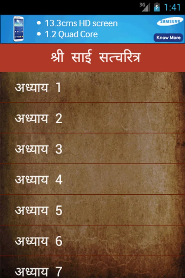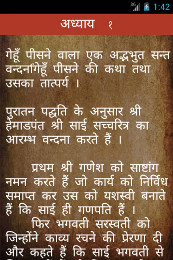 This android app offers you Shri Sai SatCharitra Parayan which includes all adhyay / stories in Hindi. You can use this app when you dont have any big book for Sai Charitra Parayan.. You can read it any time whenever you are away from home or at home also. This app includes stories about Sai Baba Life in Hindi.