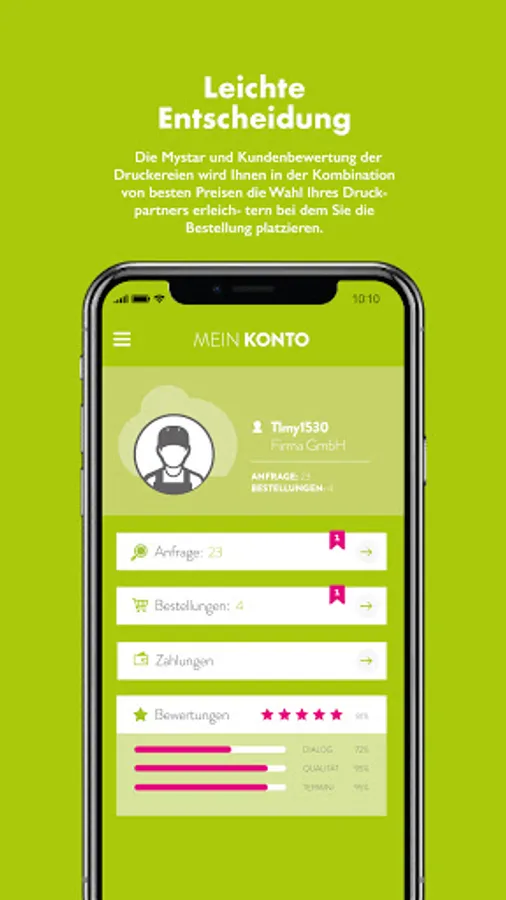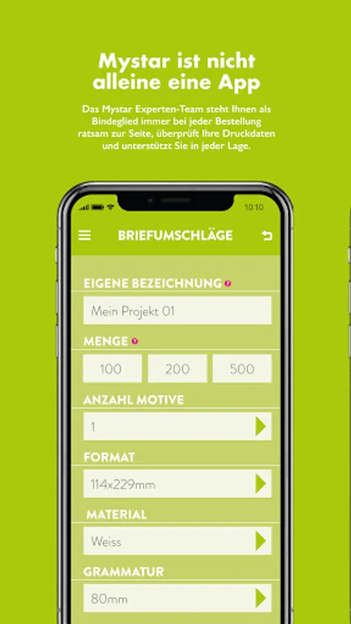 "MyStar Print is a mobile and web application for your printing orders. The user can send an application for any printing project with just a few clicks to a large number of printeries carefully selected by Mystar. You will receive offers in response to your inquiries from several printeries at the same time within 24 hours. Visible prices and customer ratings will make it easier for you to decide between the offers of the printing companies.