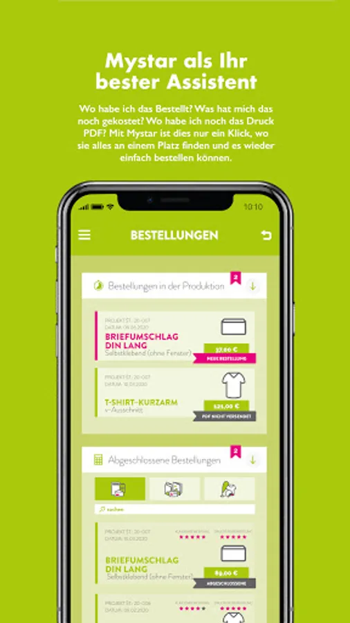 The implementation of the Mystar application not only presents you with a new app on the market, but in addition to its services, it also offers you a group of experts who will always act as a link between you and the printery during the project. The team guarantees you the review of your print data and support in every situation and with every question. Nothing is left to a chance or to the customer itself. With the Mystar app we want to take away from you the well-known doubts such as: “Where did I ordered that?”, “How much did it cost?”, “Where is my printed .pdf?”. With just a few clicks you can find all your data collected on Mystar."