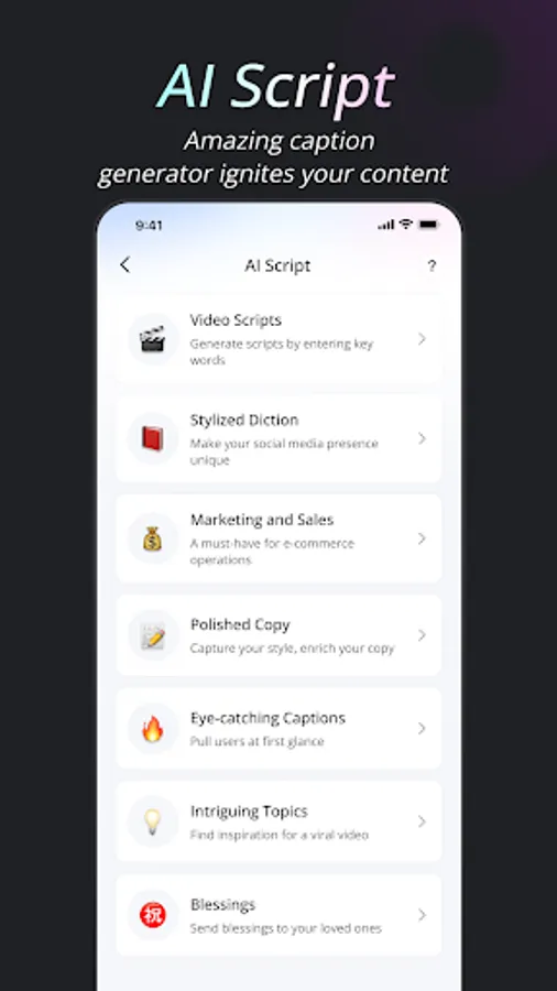 AI Script: Allow your message to inspire! Just enter a few keywords and AI will provide topics, captions, scripts and more for your unique social platform presence!