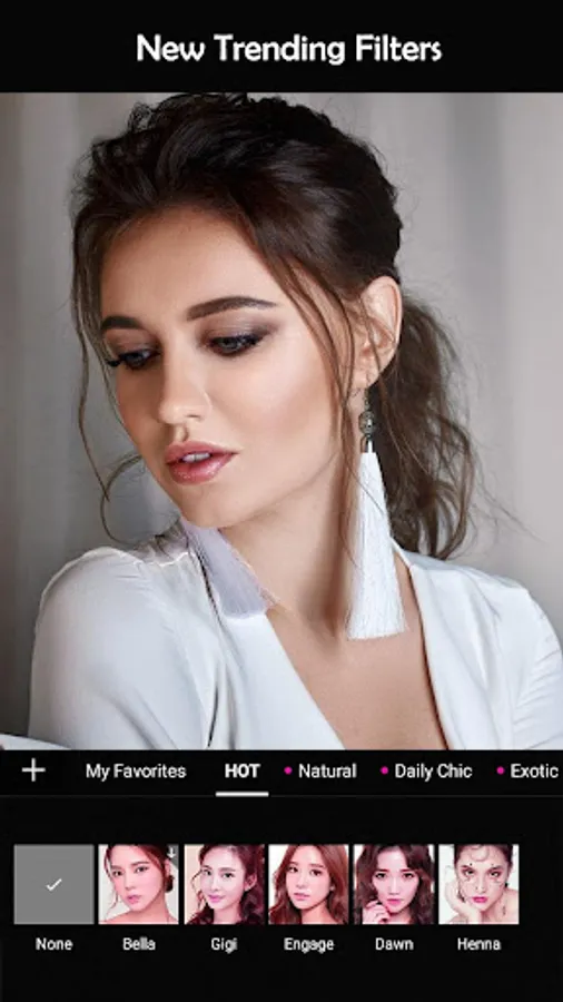 The app is a virtual makeup kit with several makeover options. Start editing it by cropping, flipping and rotating selfie. Then set the brightness, contrast, color saturation, and sharpness. During the editing long press on the photo to have a quick sneak of the original unedited photo. Undo and redo during editing to have more accessibility.