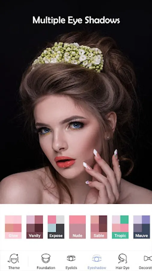 Compliment your makeup with beauty accessories such as cooling glasses, earrings, crown, necklace, etc. using this face tune picture editor and photo makeover app, or fashion and beauty app.