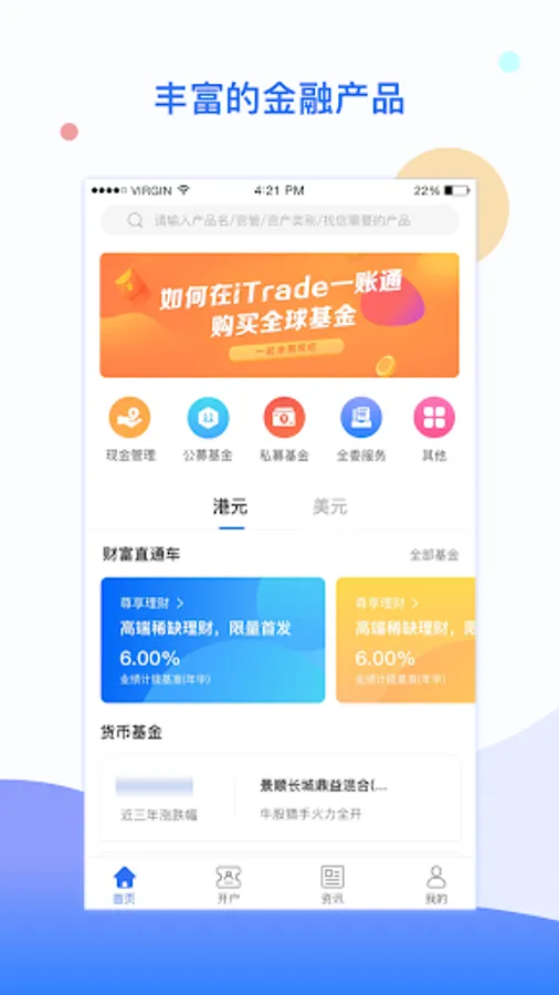 At present, the platform covers a complete range of global public offering funds, private equity funds, fixed income and other financial products.