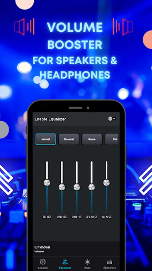 Vous pouvez sélectionner des effets sonores instantanément par les préréglages par défaut. Interface utilisateur et fonction de balayage de Bass Booster & Volume booster. Il vous permet de contrôler facilement les lecteurs de musique. Utilisez-le avec un casque pour obtenir les meilleurs résultats et profitez d'une qualité sonore sans précédent.🎼