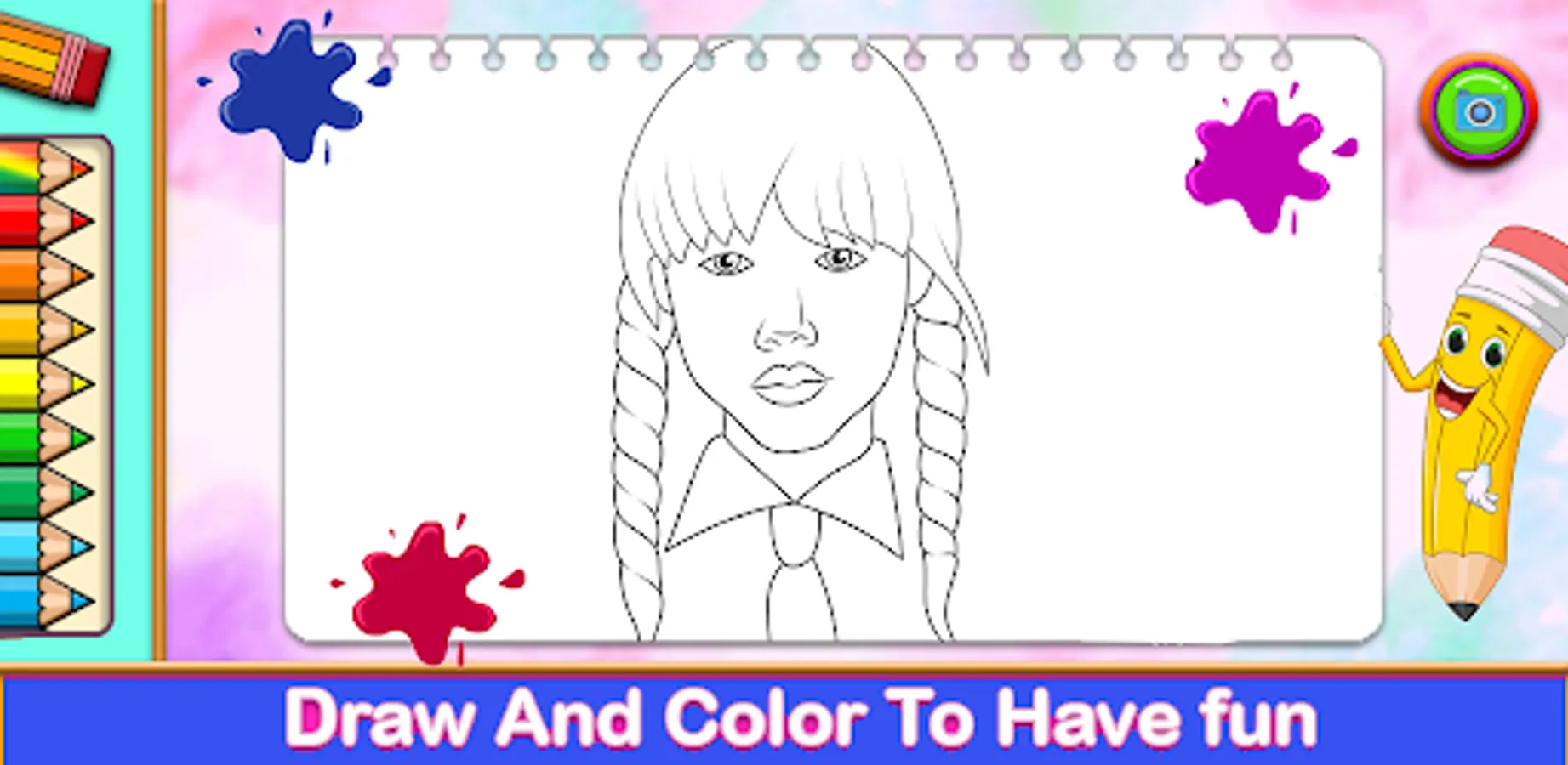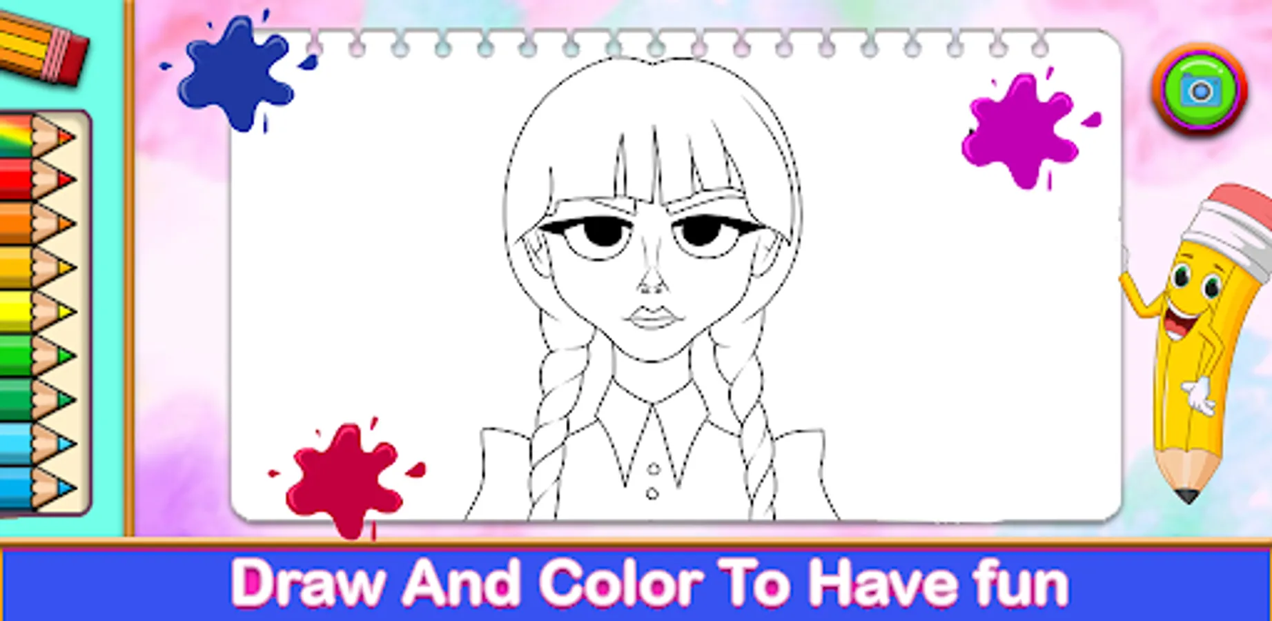 Welcome to the Super Android app for Wednesday Addams Coloring book sure to surprise you with all the different cute colors to draw the whole horror Wednesday Addams coloring pages you like!