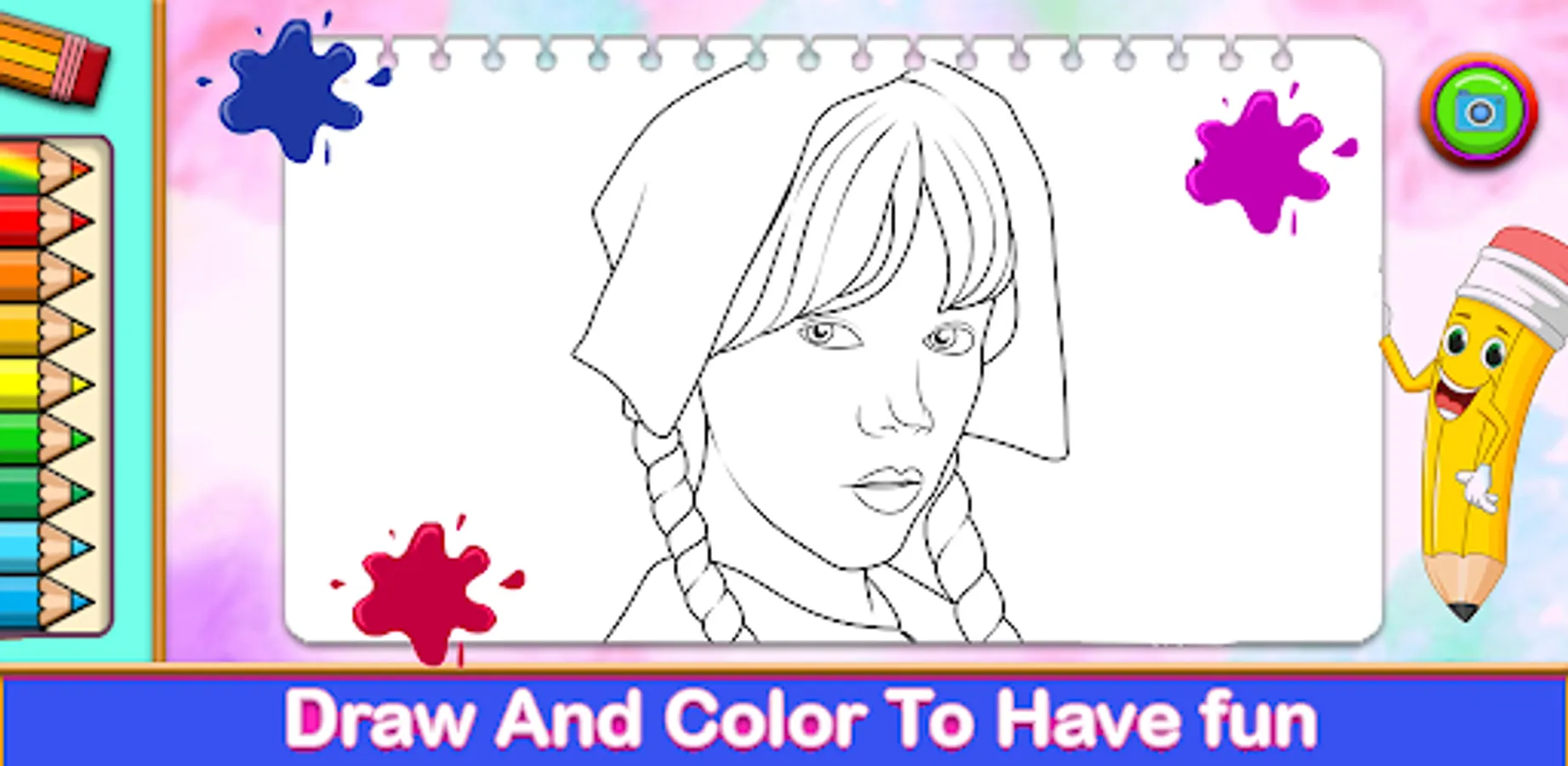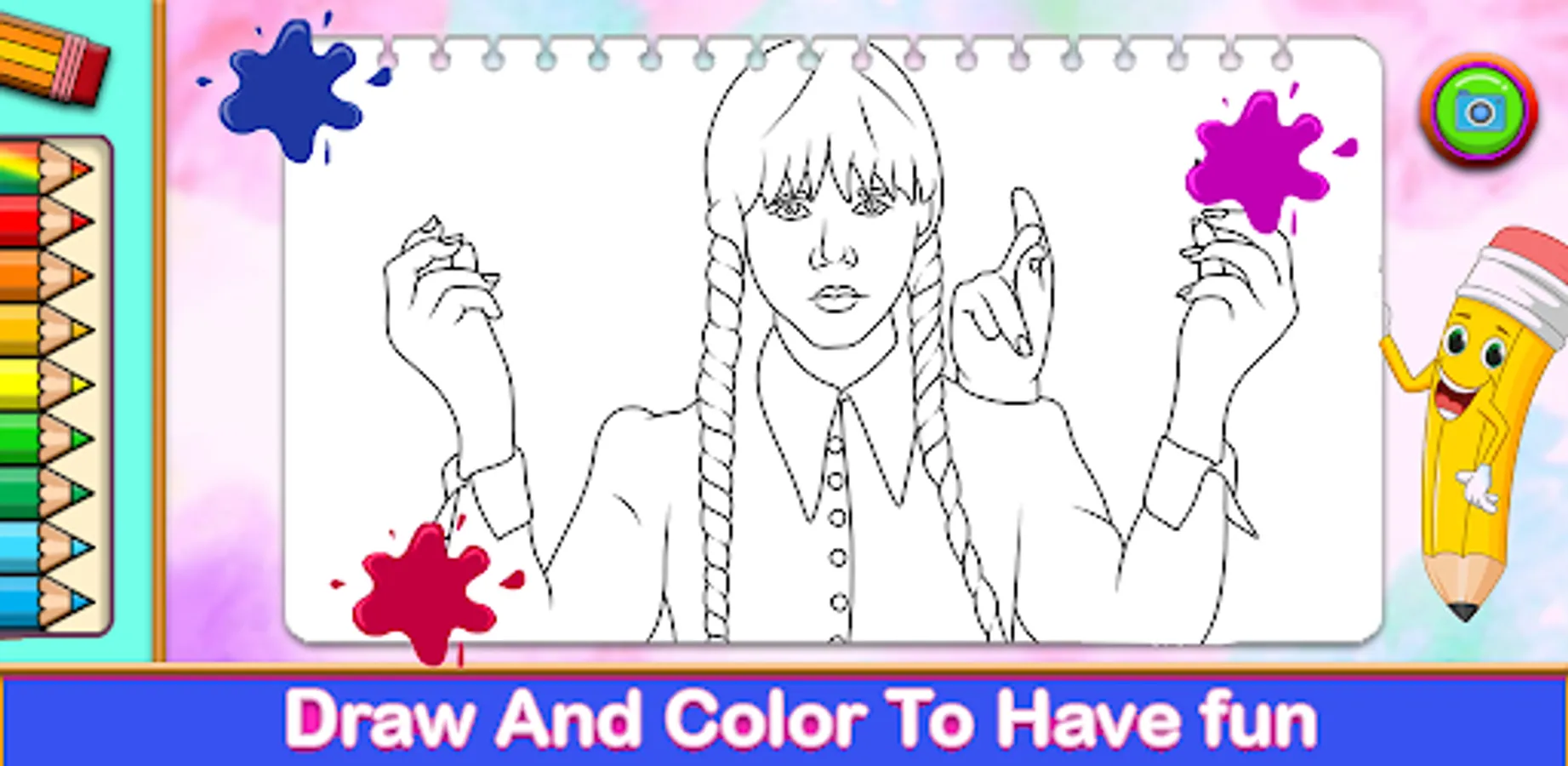 This app provides a large collection of Wednesday Addams movie coloring games and is also a very useful tool for developing imagination and creativity and increasing the level of concentration! It is primarily designed for all ages but just as great.