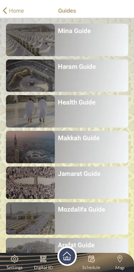 وهي حزمة علي التطبيق تمد الحاج بالمعلومات التي توفرها المنصات الرسمية للدولة واتلي يحتاجها يحتاجها اثناء قيامة بالفريضه وهي عبارة عن :