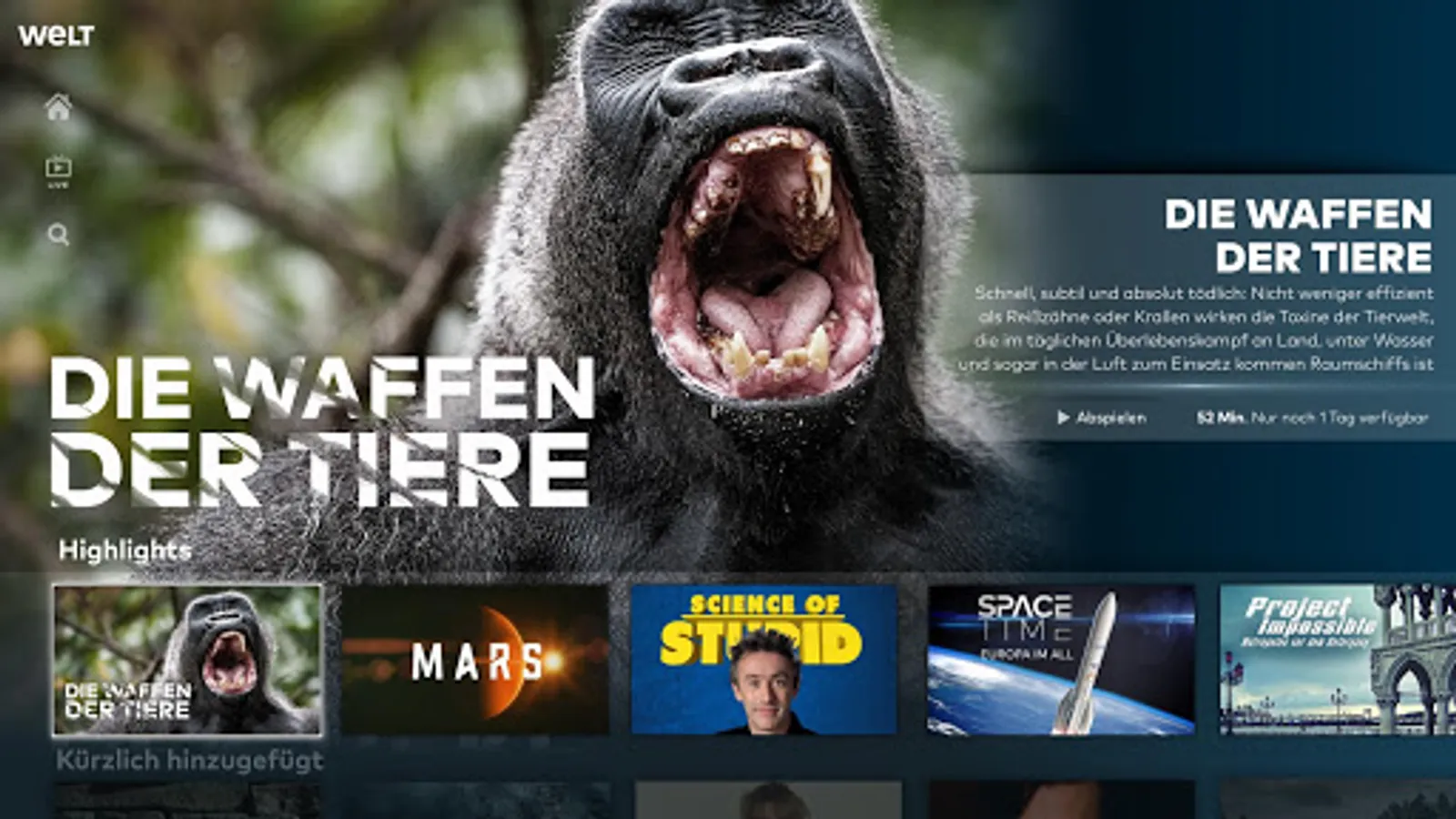 Stream all documentaries, reports, magazines, talk after the TV broadcast for a limited time.