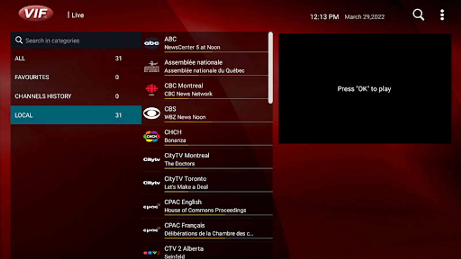 Television brought to you by VIF Internet. You must be signed up to a VIF Internet service. This application will only work when you are connected directly to your VIF Internet service