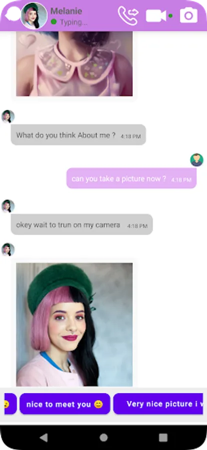 Melanie Martinez Video Call and Chat is a simple app that lets you make a fake video call with your celebrity Melanie Martinez and live chat with her. Enjoy calling your favorite Melanie Martinez and talk with her in a fun way, don't hesitate and download this app.