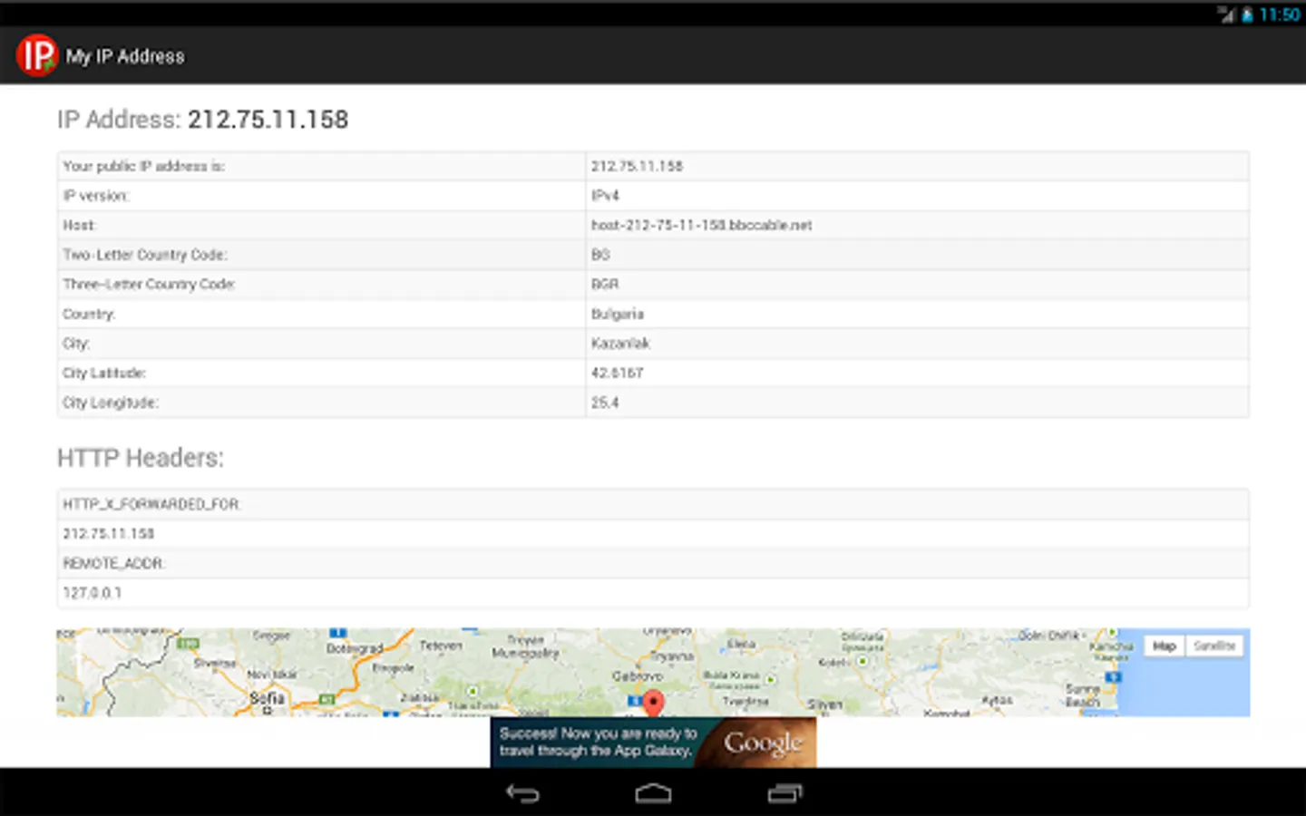 - shows the exact location (if available in the IP database) of your device on the map