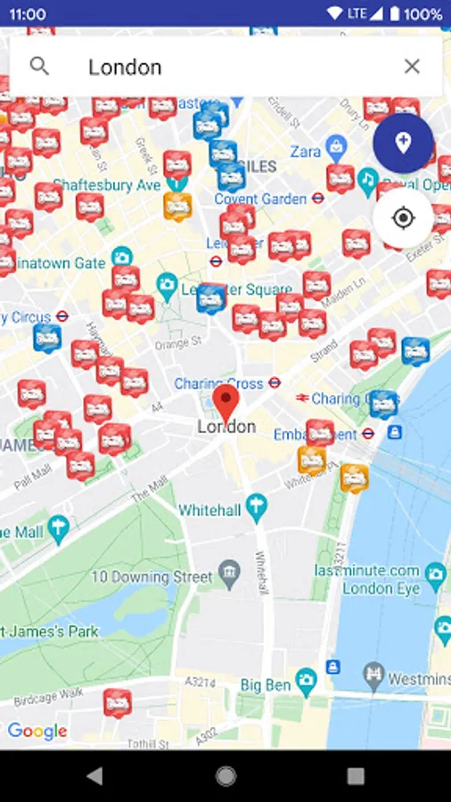 With this app you can use your current GPS location or search by street name, city or postcode.