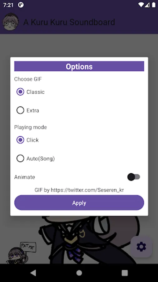 This soundboard is a celebration of Herta's unique character, bringing their distinctive sound directly to your device. Whether you're a fan of the game or simply looking for a touch of joy in your everyday life, "Kuru Kuru - Soundboard" is the perfect app.